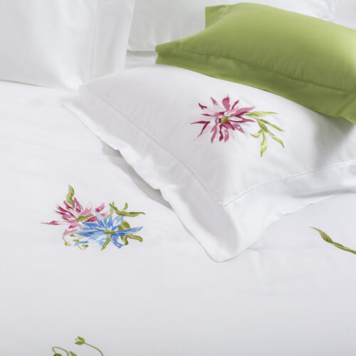 Hand embroidered by our skillful artisans, our floral bed sheets feature an explosion of colours, beautifully dressing your bed like a painting. Carefully crafted on long staple cotton satin, they add a unique touch to your bedroom.