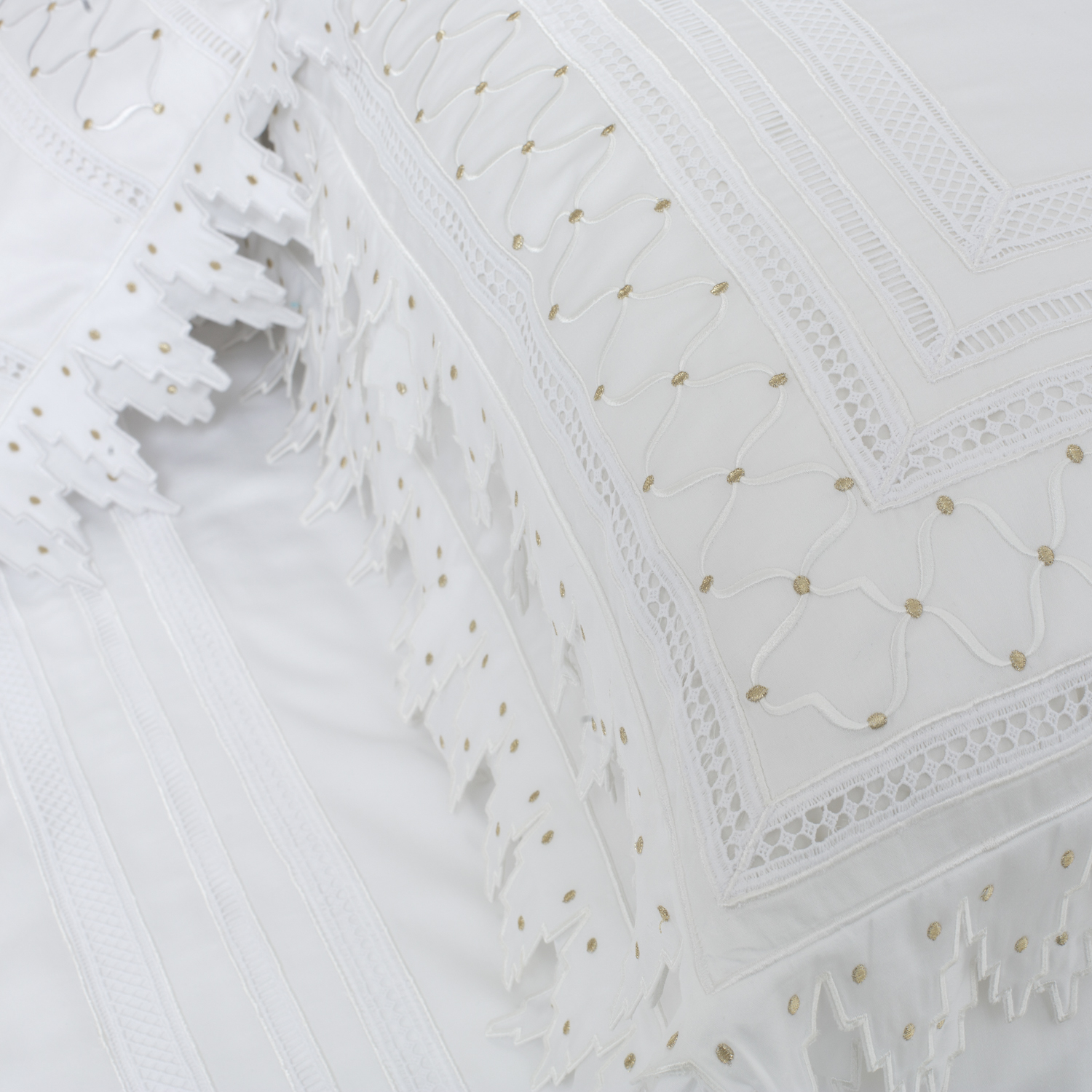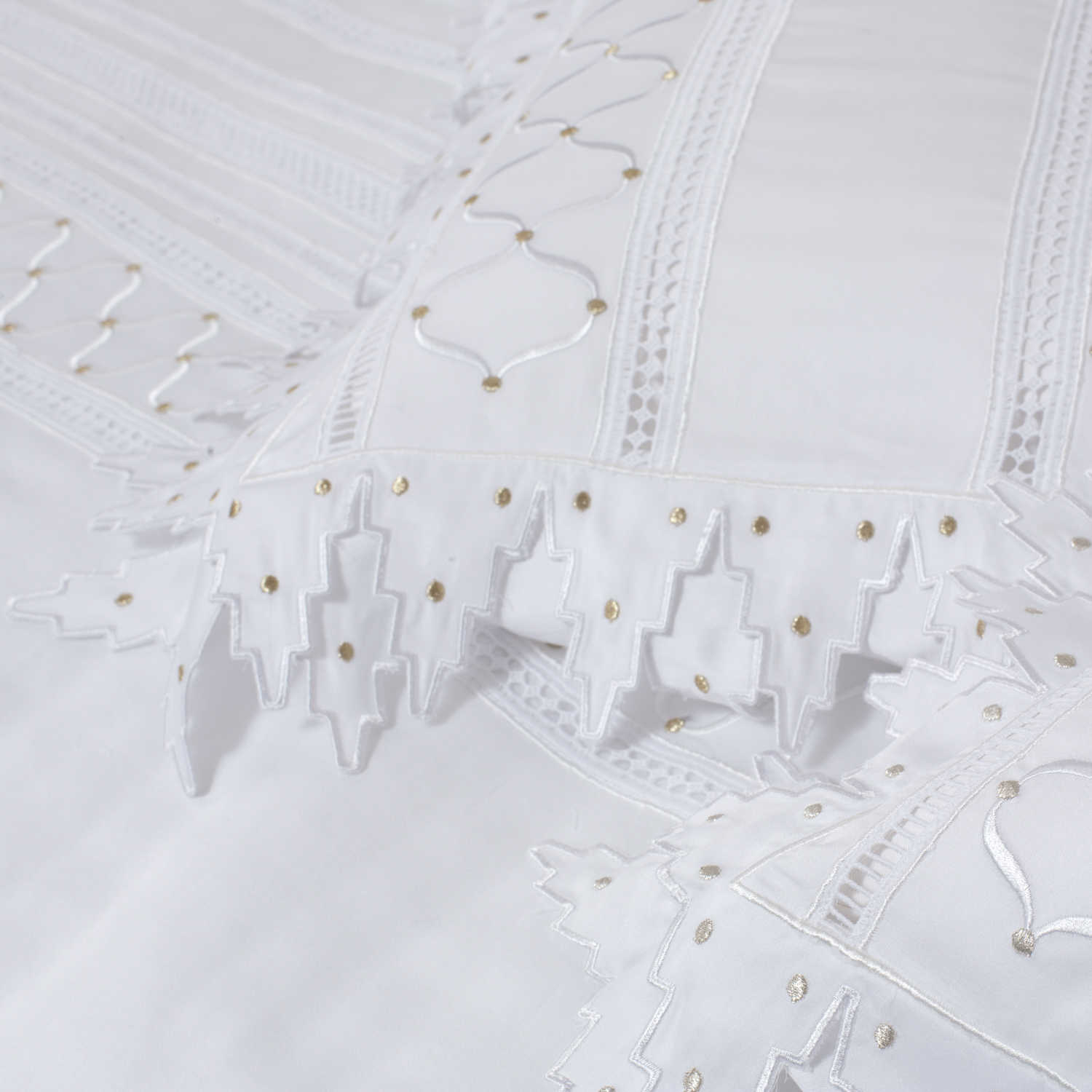 Hand embroidered by our skillful artisans, our floral bed sheets feature an explosion of colors, beautifully dressing your bed like a painting. Carefully crafted on long staple cotton satin, they add a unique touch to your bedroom.