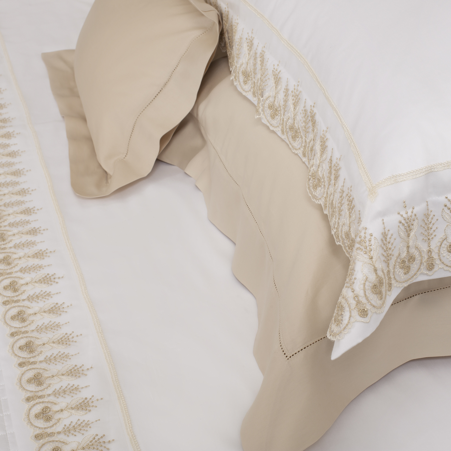 Hand embroidered by our skillful artisans, our floral bed sheets feature an explosion of colours, beautifully dressing your bed like a painting. Carefully crafted on long staple cotton satin, they add a unique touch to your bedroom.